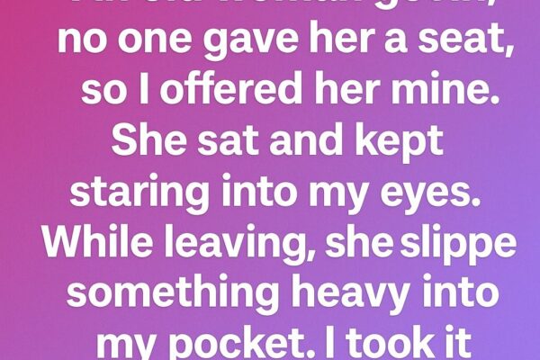 It was one of those weary afternoons when even sitting felt like relief. Seven months pregnant, I was riding the bus home, lost in thought, when an older woman climbed aboard. Without hesitation, I stood and offered her my seat. She accepted with a soft smile, settling beside me. Now and then, she glanced my…