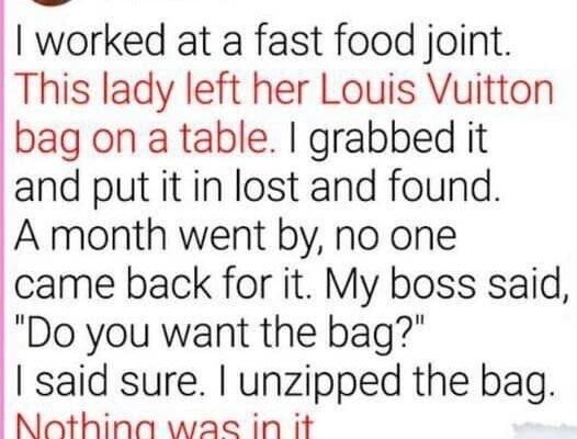 I was working at a fast-food restaurant one day when this woman left her Louis Vuitton purse on the table. After taking it, I put it in the lost and found.I didn’t ever look inside.A month went by.According to my manager, “Hey, it’s been a month. Would you like that bag?Yes, I replied, and…