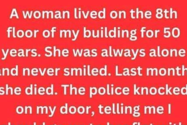 This woman had lived on the 8th floor of my building for 50 years. She was always alone, and never smiled. All the neighbors avoided her because she could start a fight at any moment. Last month, she died. The police knocked on my door, telling me I should go up to her flat with…