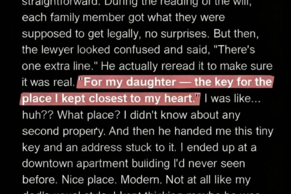 My dad passed away a few months ago. He didn’t have a ton of stuff, and everything was pretty straightforward. During the reading of the will, each family member got what they were supposed to get legally, no surprises. But then, the lawyer looked confused and said, “There’s one extra line.” He actually reread…