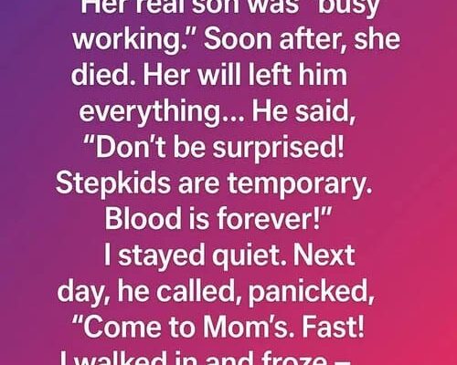 I spent weeks caring for my stepmother after her surgery while her biological son claimed he was “too busy with work.” Not long after, she passed away. When the will was read, everything went to him.   With a cold smile, he said, “Don’t act sh0cked. Stepkids come and go—blood is what truly matters.” I…