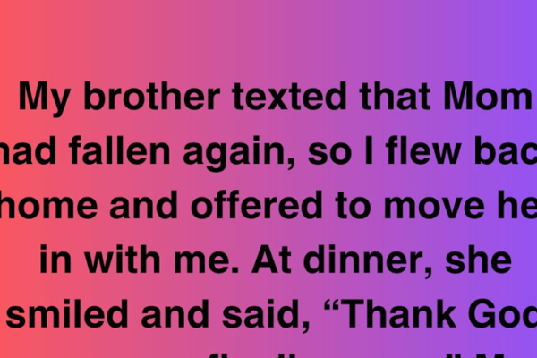 My brother texted that Mom had fallen again, so I flew back home and offered to move her in with me.   At dinner, she smiled and said, “Thank God someone finally cares.” My brother’s fork clattered onto his plate.   Later that night, I opened her suitcase and gasped when I saw her house…