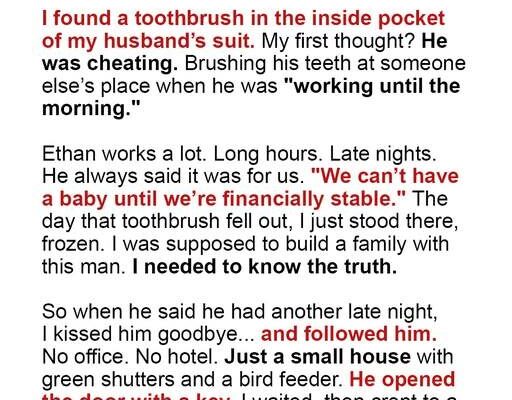 It started with something small: a blue toothbrush wedged in the pocket of my husband’s suit jacket, its bristles still streaked with dried toothpaste. Not a travel kit, not a gym bag—his suit. The discovery gnawed at me until the next morning, when I followed him out of town. Instead of heading to the…