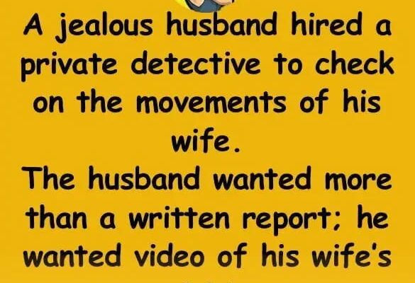 Funny Joke: A jealous husband hired a private detective to check on the movements of his wife