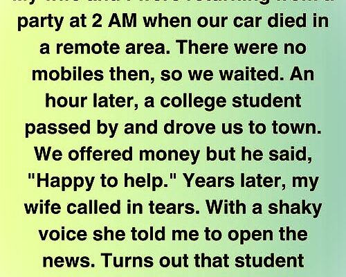 Late one night many years ago, my wife and I were driving through a remote area when our car broke down. With no cell phones back then, we felt completely stranded. After a long wait, a college student pulled over and offered us a ride into town. We were so grateful that we tried…