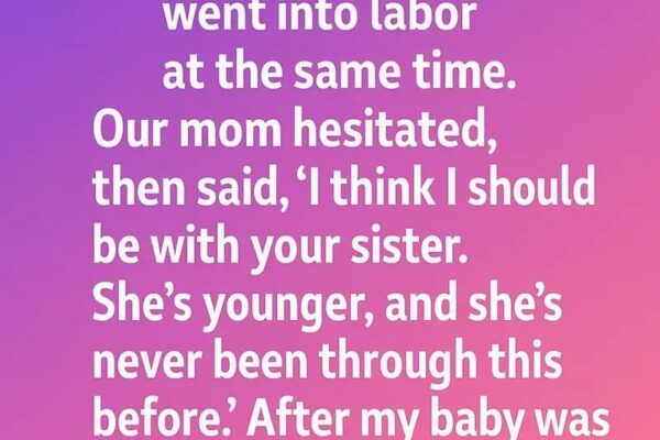My sister and I went into labor at the same time. Our mom hesitated, then said, ‘I think I should be with your sister. She’s younger, and she’s never been through this before.’ After my baby was born, I texted my mom. Her reply shocked me.At first, I tried not to take it personally….