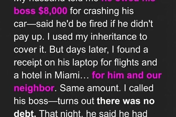 I thought I understood what marriage meant after seven years with Mike — partnership, honesty, devotion.   Those beliefs shattered the day I used part of my grandmother’s $15,000 inheritance to “save” him from what he claimed was an $8,000 debt after crashing his boss’s car. I acted out of love, grief, and trust, wanting…