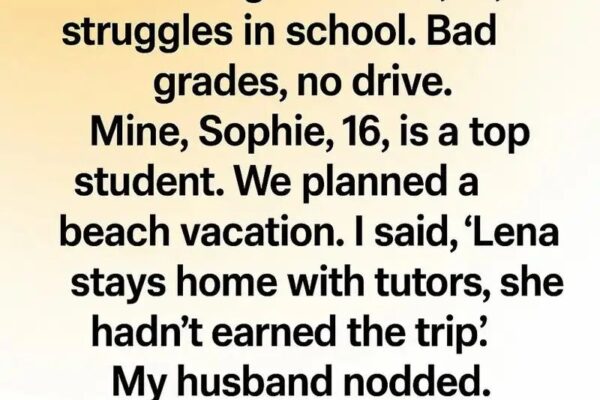 My husband and I both have children from previous marriages. His daughter, Lena, 15, has been struggling in school — poor grades, no motivation. My daughter, Sophie, 16, is the opposite: focused, ambitious, and consistently at the top of her class. When we planned a family beach vacation, I said, “Lena should stay home…