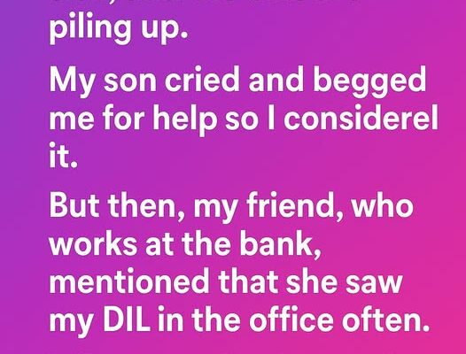 My daughter-in-law is sick, and the bills are piling up. My son cried and begged me for help, so I considered it. I’ve always done my best to support my family, and watching them struggle broke my heart. I was ready to give them a large sum of money when a friend, who…