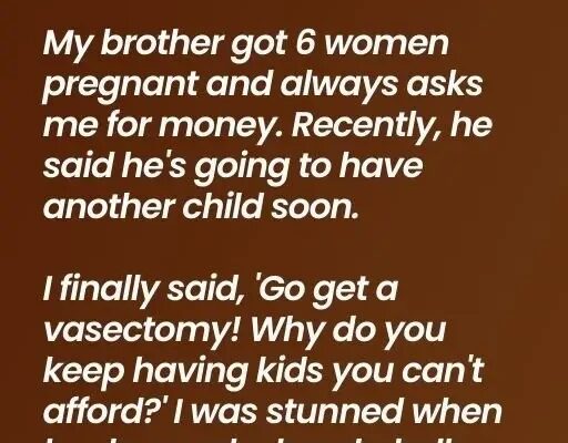 My brother got 6 women pregnant and always asks me for money. Recently, he said he’s going to have another child soon. I firmly said, “Get a vasectomy! Why do you keep having kids you can’t afford?” I was stunned when he dropped a bombshell: “Actually, it’s because… I want a big family like Dad…