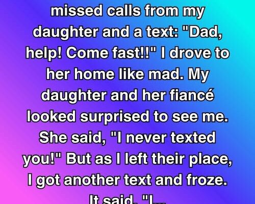 I woke up at 2 a.m. to 18 missed calls from my daughter and a text: “Dad, help! Come fast!!” I drove to her home like mad. My daughter and her fiancé looked surprised to see me. She said, “I never texted you!” But as I left their place, I got another text and…