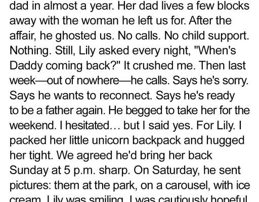 When my ex-husband, Leo, said he wanted to reconnect with our daughter Lily after three years of silence, I wanted to believe him. He said he wanted “a weekend to make things right.” Against my better judgment, I packed Lily’s little yellow backpack with pajamas, snacks, her teddy bear, and her favorite dress. A small,…