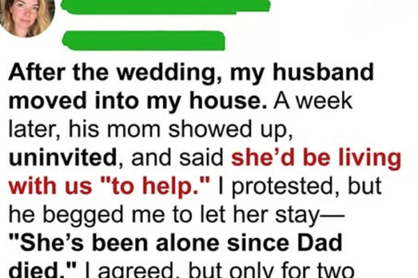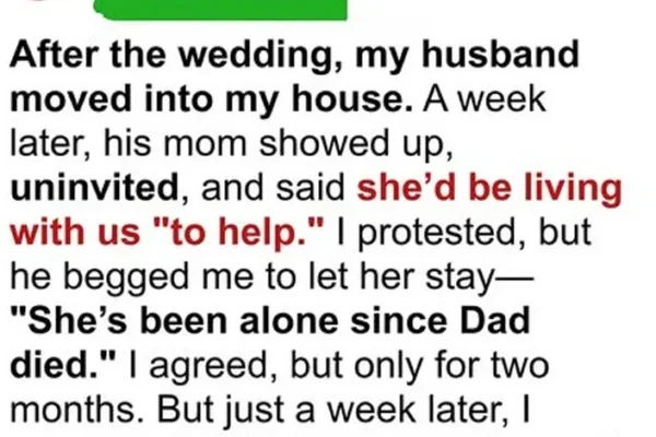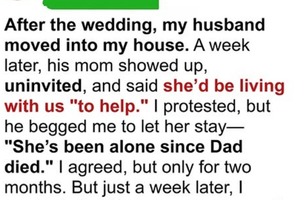 After the wedding, my husband moved into my house. A week later, his mom showed up, uninvited, and said she’d be living with us “to help.” I protested, but he begged me to let her stay—“She’s been alone since Dad died.” I agreed, but only for two months. But just a week later, I went into the…