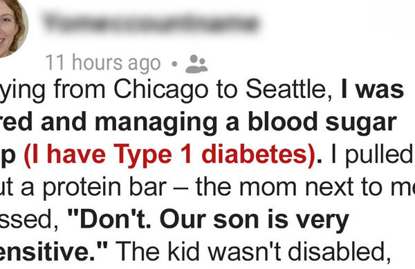 I’m Elizabeth, a marketing consultant with Type 1 diabetes who practically lives in airports. I’m diligent about carrying snacks and insulin, because a sudden drop in blood sugar can be dangerous—especially on a long flight. On a recent Chicago–Seattle trip, a fellow passenger’s child was kicking my seat and whining, so when I unwrapped a…