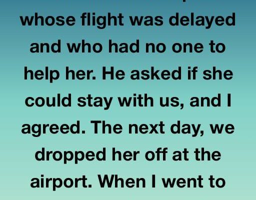 The rain pressed hard against the windows the night Arthur came home with a stranger. I was stirring soup, half-listening to the radio, when the door opened and he stood there soaked, eyes full of concern. He told me about an elderly woman stranded by flight delays, frail and alone, with nowhere safe to…