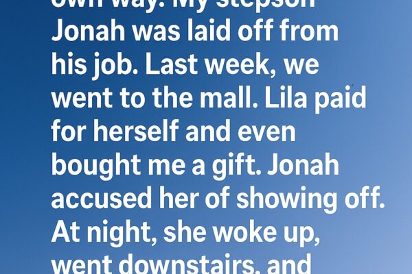 My daughter Lila lives with us but pays for her own way. My stepson Jonah was laid off from his job. Last week, we went to the mall. Lila paid for herself and even bought me a gift. Jonah accused her of showing off. At night, she woke up, went downstairs, and saw him…quietly…