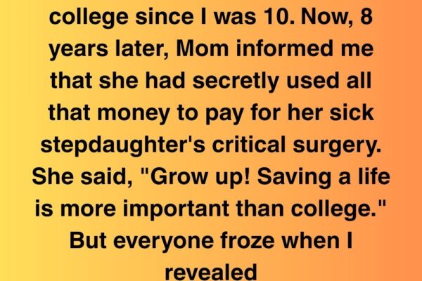 I started saving up for my college since I was 10. Now, 8 years later, Mom informed me that she had secretly used all that money to pay for her sick stepdaughter’s critical surgery. She said, “Grow up! Saving a life is more important than college.” But everyone froze when I revealed…that I already…