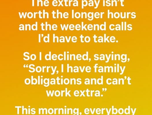 Yesterday I got promoted at work. The extra pay wasn’t worth the longer hours and the weekend calls I’d have to take. So I declined, saying, “Sorry, I have family obligations and can’t work extra.” This morning, everybody froze when we all received an email that said: “True leadership lies in choosing balance over…