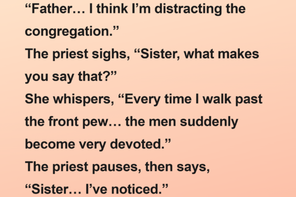 The priest sighs, “Sister, what makes you say that?” She whispers, “Every time I walk past the front pew… the men suddenly become very devoted.” The priest pauses, then says, “Sister… I’ve noticed.” She leans closer, “What should I do?” The priest clears his throat nervously, “Well… maybe… try a thicker habit?” She smiles…