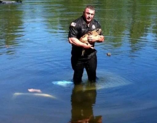 When a woman’s truck plunged into deep water, she escaped with one dog while the other remained trapped. Officer David Harriman arrived, dove in fully uniformed, and fought through freezing water and jammed doors until he resurfaced—soaked, breathless, but with the dog safe in his arms. Marissa, the woman, wept as she clutched both her…