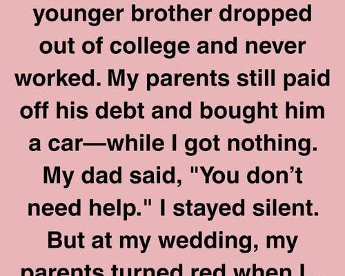 I (34) am a nurse. My younger brother dropped out of college and never worked. My parents still paid off his debt and bought him a car—while I got nothing. My dad said, “You don’t need help.” I stayed silent. But at my wedding, my parents turned red when I thanked only my late…