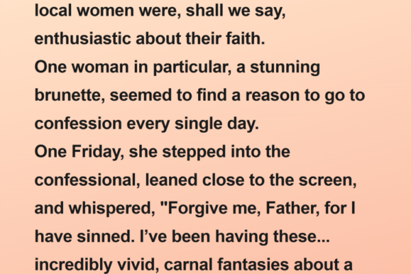A young, incredibly handsome priest was transferred to a small parish where the local women were shall we say, enthusiastic about their faith. One woman in particular, a stunning brunette, seemed to find a reason to go to confession every single day. One Friday, she stepped into the confessional, leaned close to the screen,…