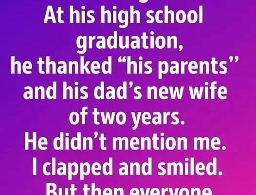 I raised my stepson from age 4. At his high school graduation, he thanked “his parents” and his dad’s new wife of two years. He didn’t mention me. I clapped and smiled. But then everyone went silent when I stood up and walked toward the stage, not with anger or disappointment, but with a…