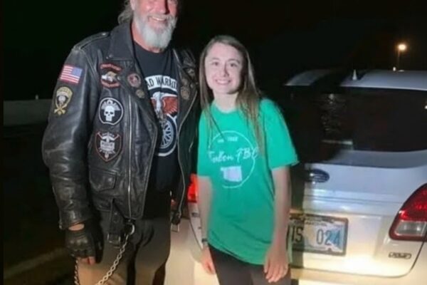 I spotted the white sedan on a dark highway and the teenage girl beside it gripping a tire iron like a weapon. She was terrified, shaking, constantly glancing at the trunk as if something inside might hurt her. I introduced myself, hands up, retired firefighter patches visible. She said her name was Madison and…