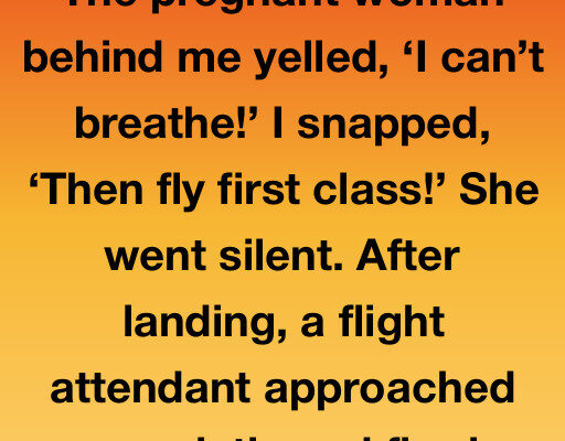 I reclined my seat hard. The pregnant woman behind me yelled, ‘I can’t breathe!’ I snapped, ‘Then fly first class!’ She went silent. After landing, a flight attendant approached me quietly and firmly said, ‘Sir, there’s a police officer waiting to speak with you at the gate.’” My heart sinks. I freeze in my…