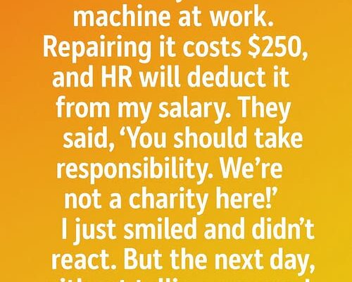 I accidentally broke the fancy coffee machine at work, and HR immediately told me that they would deduct the $250 repair cost from my salary. Their tone was firm, reminding me that responsibility was very important in the workplace. I simply nodded though the situation stung a little. Rather than arguing, I went home…