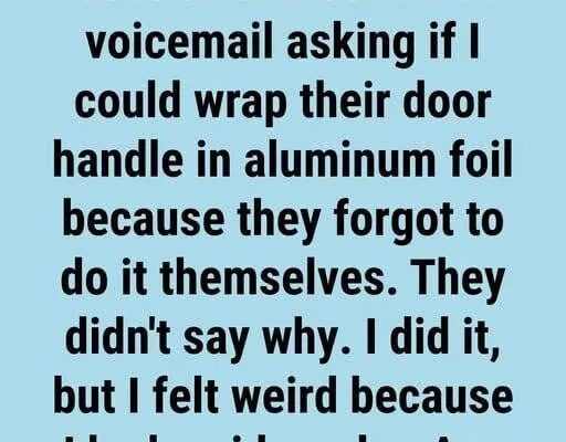 When my neighbors left for vacation, they left me a voicemail asking if I could wrap their  door handle in   aluminum foil. They didn’t explain why, but they sounded rushed, so I agreed without thinking. As I stood on their porch holding the foil, I felt a little silly. Still, I wrapped the handle neatly and…