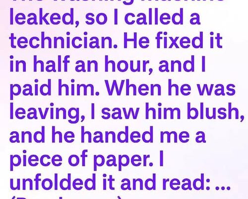 It began with something ordinary — a leaking washing machine. The repairman arrived, fixed it quickly, and I thanked him, ready to move on. But before leaving, he slipped me a folded note. His hands trembled. “Please call me. It’s about someone you know,” it read. I almost threw it away — until I saw…