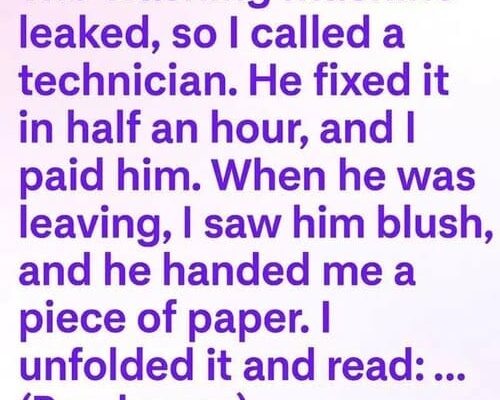 It began with something so ordinary I barely gave it a second thought: my washing machine started leaking. Annoyed but pragmatic, I called a repair service. A young technician showed up, fixed the issue in no time, and packed up his tools. I thanked him, paid, and walked him to the door. That’s when…