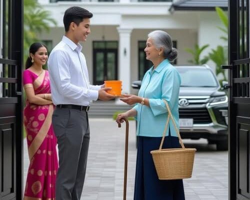 A seventy-year-old mother went to her son’s house, hoping to borrow money for her heart surgery. But instead of providing help, he handed her a packet of instant noodles and politely sent her away When she opened it later that evening, what she found left her trembling in disbelief… It was a rainy afternoon…