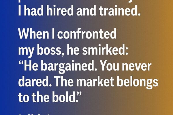 After 12 years of hard work, I just found out that I was paid 20% less than a junior I had hired and trained. When I confronted my boss, he smirked: “He bargained. You never dared. The market belongs to the bold.” I didn’t argue … Next day, he ran to my office, pale…