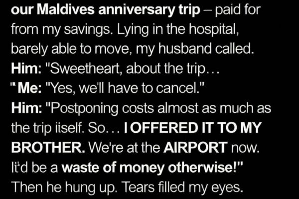 At 52, I had a stroke just three days before our Maldives anniversary trip — paid for from my savings. One moment I was folding laundry and thinking about turquoise water and quiet mornings, and the next I was waking up under bright hospital lights, my body heavy and unresponsive. The doctors spoke gently,…